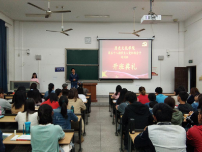 (通讯员 王兰兰)2017年10月20日晚,历史文化学院第58期入党积极分子培训班于9203教室正式开班。本期入党积极分子培训班共有69名学员,院党委书记寇富安、班主任章重明、带队老师史亚楠参加了本次开班典礼。