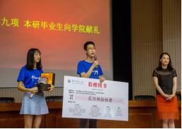 毕业典礼的最后一个环节是毕业生代表向学院赠送礼物,表达对学院培养的谢意。本科毕业生向学院图书角赠送了近300本书籍,希望书香永远氤氲着历史文化学院。同时,本科毕业生还精心制作了带有每一位毕业生头像的笔筒,表达了毕业生对学院领导和老师们最深沉的感谢。毕业研究生代表齐远飞同学向学院赠送了带有“师恩难忘”字样的精美屏风摆件。他代表全体研究生表示,不论以后身在何处,必将不忘师恩,奋力前行。学院分党委副书记康薇代表学院接受了毕业生们赠送的礼物,她向毕业生们表示感谢,并祝愿大家在新的人生征途中一帆风顺。