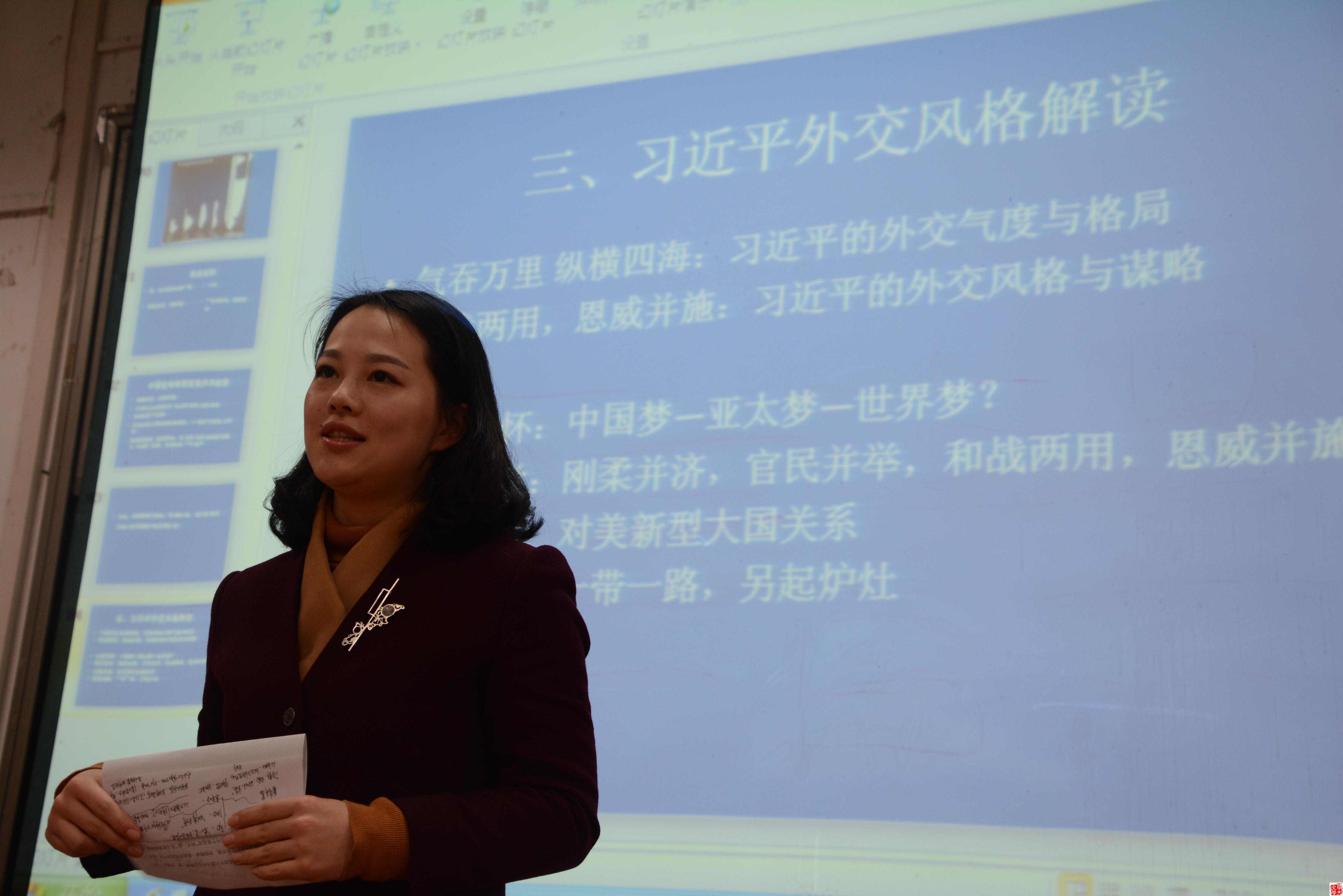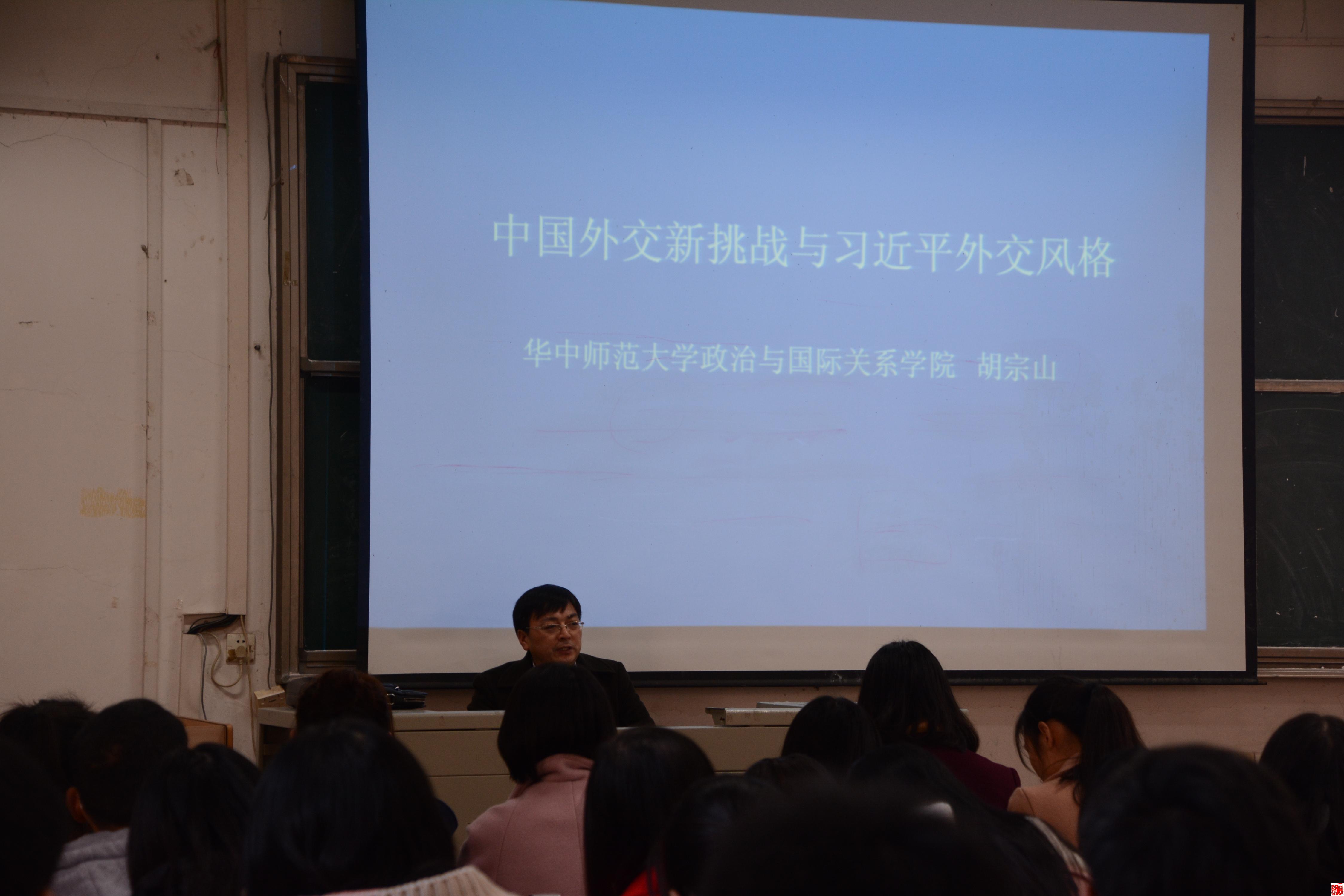 根据 “两学一做”学习教育工作要求,12月2日下午,历史文化学院分党委邀请校“两学一做”学习教育讲师团成员,政治与国际关系学院副院长胡宗山教授作了题为“中国外交新挑战与习近平外交风格”的专题报告。学院全体学生党员参加学习。