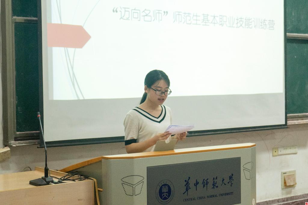 (通讯员莫倩兰)6月7日 ,历史文化学院2017级“迈向名师”课堂教学技能训练营口语培训决赛在1201教室举行,本次莅临本次活动现场的嘉宾有历史文化学院学生会副主席张开,华中师范大学校主持队曹书瑞。
