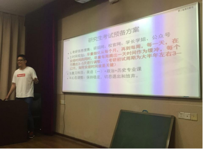 最后,文遗班的李钟鼎同学和我们进行了分享。李钟鼎同学在温程同学分享的基础上行了一些补充,比如李钟鼎同学主要介绍了一下中国古代史的一些院系情况,并且分享了一下他的备考策略,比如他在世界史方面比较薄弱,就会花较多的时间来学习世界史,因此,一定要对自己的情况有一个比较清楚的认识,然后对症下药,制定自己的学习计划,同时不断进行调整。至此,历史文化学院2015级考研分享会圆满结束。