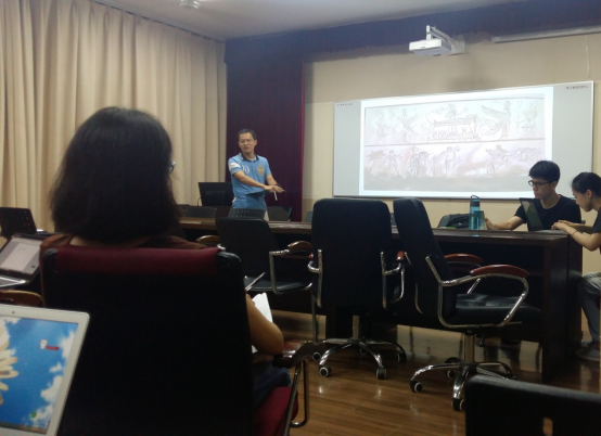 本期学术训练营的主讲人是历史文化学院的戴鑫老师。戴鑫老师的专业方向是古代东方文明与埃及学,具体研究领域是希腊罗马时代埃及的社会与文化。本次戴鑫老师正是以希腊罗马时代的埃及为例来介绍“怎样选择科研领域”这一主题。在导入环节,戴鑫老师通过几张图片来切入主题。第一张图片取景于墓室,同时展示了希腊文化与埃及文化。而第二张图则充分反映了两种文化的碰撞和人们信仰混乱的情况。希腊人认为死后浑浑噩噩,而埃及人则相信死后可以复活。通过两张图片,戴鑫老师总结道:“希腊化时代有很多反映人们现实生活的东西。比如老年人开始成为艺术的主题。人们开始更加关心自身。”