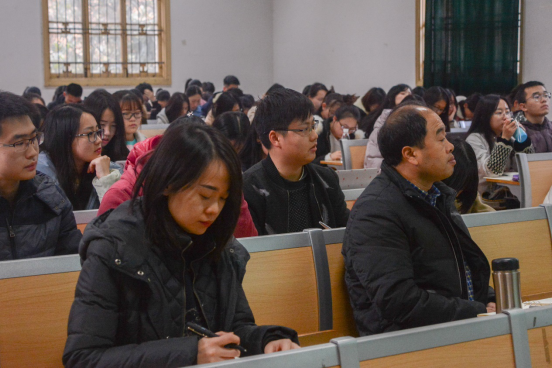 随后,王教授从传统文化对自身的熏染、传统文化的继承、中华民族复兴等方面切入,引用了《孟子》《中庸》《论语》《道德经》等经典国学著作中的箴言,并结合的“一带一路”等热点话题,为学生们阐述了当代文化社会及思想道德建设的发展。王教授结合自身研究内容,将国学经典与习总书记讲话精神紧密结合,告诫学生要有榜样意识,坚持清廉、谨慎、勤快的作风,真正做到“腹有诗书气自华”。