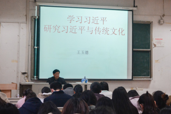 主持人刘璐首先介绍了王玉德教授,随后,她强调了大学生党员与学生干部学习习近平文化观的重要性。接着,王教授正式开始了讲座。本次讲座分为三个部分,即习近平的文化人生、在传统经典中提炼思想与习近平讲故事。